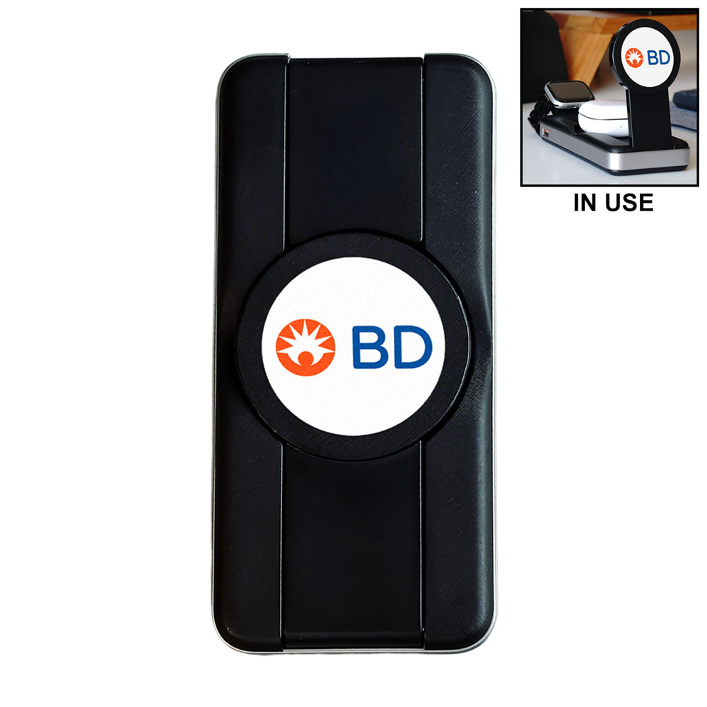A MagSafe-compatible fold-out stand, built-in Apple Watch charger, and AirPods tray keep your core devices ready at all times. With USB-C and USB-A ports, you can charge up to five devices simultaneously for true on-the-go convenience. Compact and versatile, it streamlines your entire charging routine.